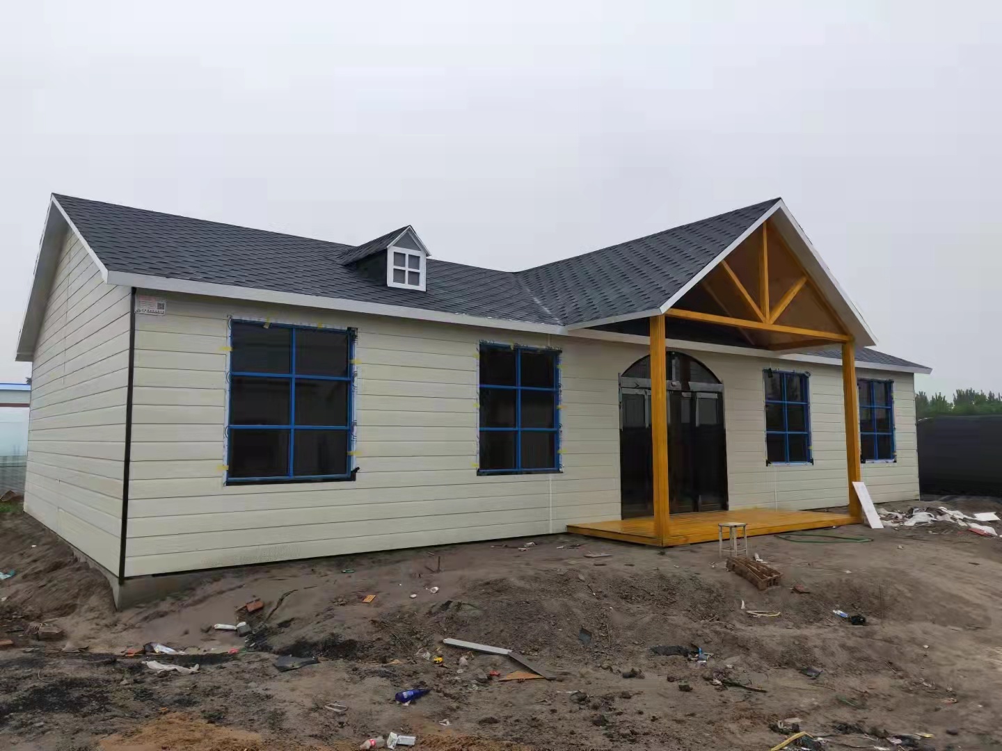 ★:主體框架為鍍鋅鋼結(jié)構(gòu),實縫焊接,外墻采用金屬雕花保溫板,墻體填充保溫防火巖棉,室內(nèi)以高科技集成護(hù)墻板裝修,隔音隔熱保溫,屋頂采用玻纖瀝青瓦,室內(nèi)采用專用高科技護(hù)墻板裝修,地面鋪設(shè)防潮板,另又鋪設(shè)木地板,斷橋鋁門窗,水電安裝齊全,拎包即可
